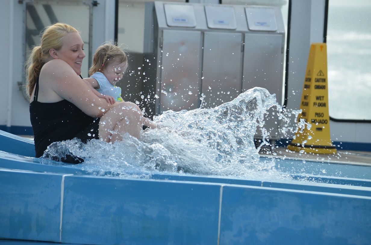 Christina and Claire on water slide