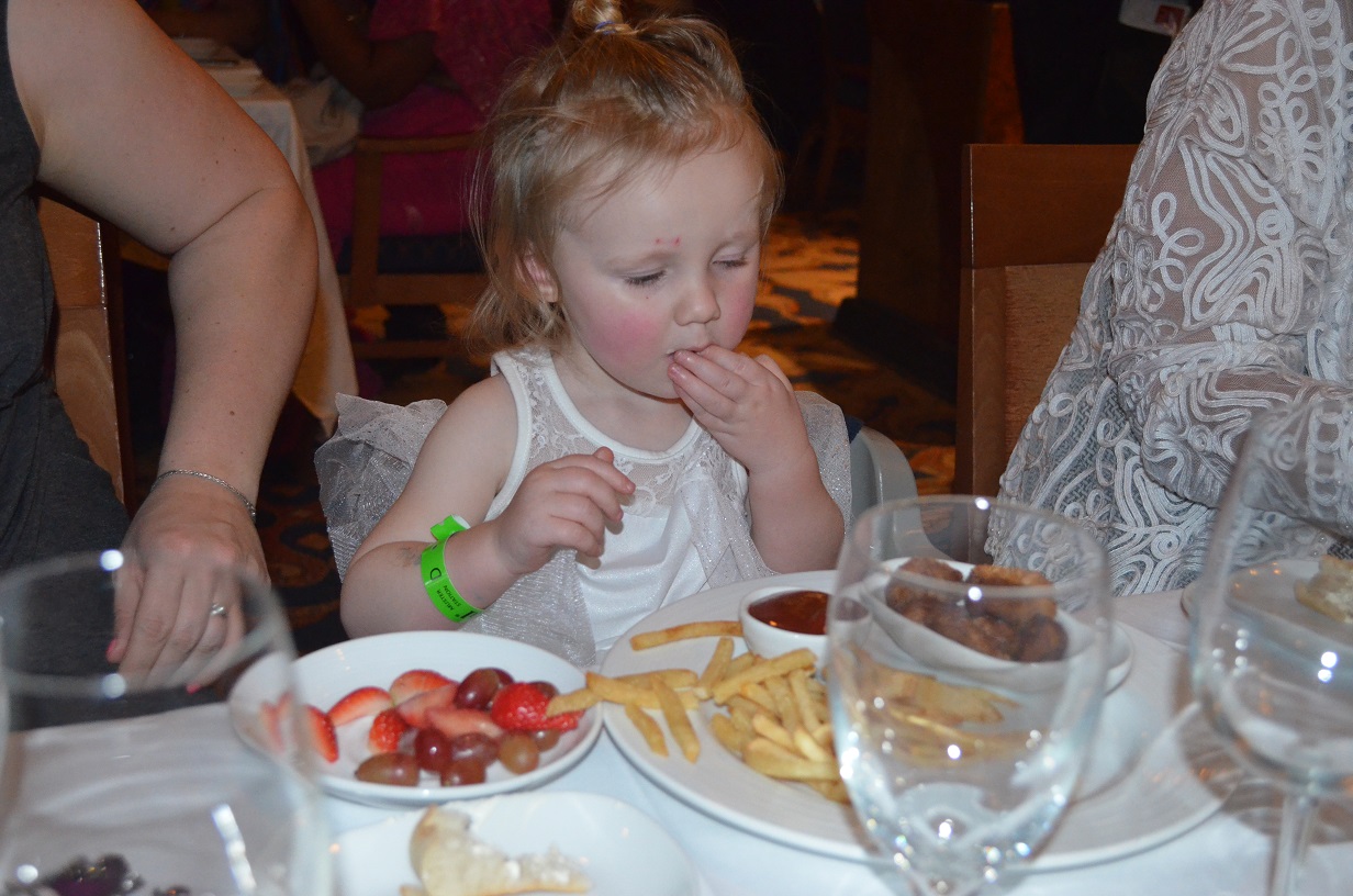 Claire at formal dinner